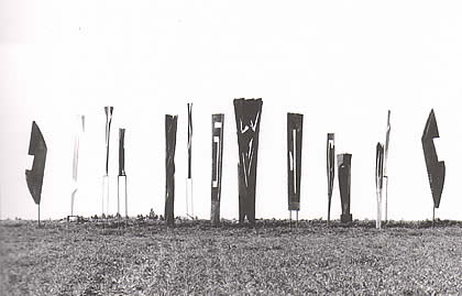 In seiner ersten Einzelausstellung in München zeigte der junge Bildhauer eine Auswahl von Holzskulpturen. Seine rußig gebrannten Stelen formt er mit der Motorsäge, dabei wird die Spannkraft des Holzes bis zum Äußersten strapaziert: um den ausgehöhlten Kern der Stämme schrauben sich differenzierte Kleinformen, die im Kontrast zur Monumentalität der bis zu drei Meter hohen Skulpturen stehen. Frischs schwarze Stelen, Einbäume und Blitze kommen ohne intellektuelles Beiwerk aus: Sie wollen Form sein, und nichts weiter.