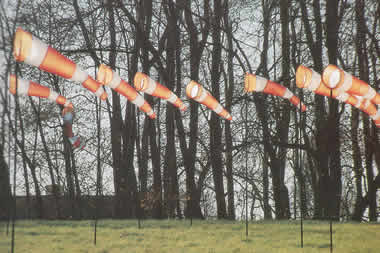 Installation: 50 Windhosen, Durchm. 50 cm, Länge 180 cm, Höhe 400 cm