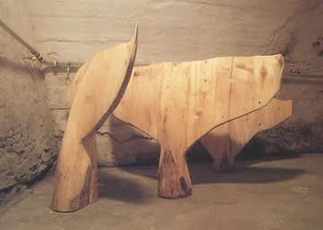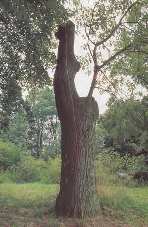 Baumstamm 60 x 650 cm, Einschnitt 40 cm tief. Installation im Schlosspark Horin