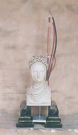Marmorbüste, Eisen-Ambosse, Schläuche, Laboratoriums-Stativ,