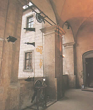 Installation unter den Arkaden im Hof von Schloss Melnik.