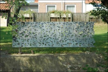 Simon Halfmeyer "Ich war noch nie in Herrenhausen. Munster/Outdoor" | 100 Meter langer Holzzaun um Naturschutzgebiet am Ollershof. Heckenobjekt aus Stahl Skulptur am Ollershof / Obstgarten