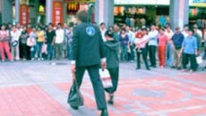 Die kreative Auseinandersetzung mit neuen Kommunikationstechnologien und ihren Auswirkungen auf unser Leben, auf unsere Kultur und auf unser Verhalten in alltäglichen Situationen war für das Künstlerduo "Empfangshalle" die Grundlage für die Entwicklung der Vision eines gesellschaftsübergreifenden Projektes in Form von Film und Installation. Corbinian Böhm und Michael Gruber verstehen ihre Kunst als Kommunikation und interaktiven Prozess mit der Gesellschaft. Als solches recherchierte Empfangshalle" in internationalen Metropolen wie Barcelona, Hongkong, Guangzhou und Berlin das Verhalten von Handybenutzern und visualisierte durch gezielte Inszenierungen und skulpturale Eingriffe in der öffentlichkeit neue Räume und Gesten, die beim mobilen Telefonieren entstehen. Beispiele dafür, wie wir uns mobile Privatsphären" schaffen, um ungestört zu kommunizieren, gibt es viele: Den in sich versunkenen Telefonierer, der mit starrem Blick auf den Boden einer unsichtbaren Linie folgend seine Runden zieht, den mit vorgehaltener Hand im Bus sitzenden, der eindringlich seine Beziehungsprobleme diskutiert oder den aus dem Funkloch fliehenden eiligen Businesstalker. Ausgehend von der Erkenntnis "Wer mobil telefoniert, grenzt sich von seiner Umgebung durch reale oder virtuelle Räume ab", formulieren und konstruieren die Künstler für ihren zukunftsorientierten Kurzfilm erste Prototypen "mobiler Telefonierräume", die im Rahmen eines weltweiten Telefonierservices angeboten werden. Das Ergebnis ist eine "documentary fiction", die den Zuschauer in einen Grenzbereich zwischen Gewissheit und Illusion führt, in einen Raum, wo sich Fakt und Fiktion mischen.