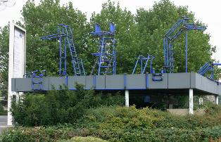 Vier rund 4m hohe Sprungbretter, konstruiert aus Wasserrohren, verwandeln den Straßenraum assoziativ in eine Wassersituation - wie geht der Mensch mit Flüssen und Bächen in der Stadt um? Flüsse werden alternativ zur Straße als Transportwege genutzt, gleichermaßen werden Fluss- und Bachläufe zugunsten der Urbanisierung zugeschüttet, umgelenkt oder unter die Erde verbannt.