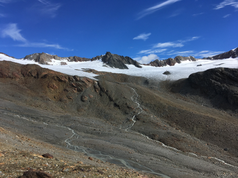 Wanderung zum Vernagtferner mit Besichtigung des Gletschertores (auf ca. 2800 m). Abstieg zur Pegelstation Vernagtbach (2640 m), Besichtigung der Messanlage für Klima und Abfluss.