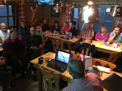 Empfang in der Raiffeisenbank in Sölden und Besuch der Ausstellung im Kulturraum Sölden, dort ist die Verbindungsstation des Gletschertelefons. Aufstieg zur Vernagthütte (2740 m).