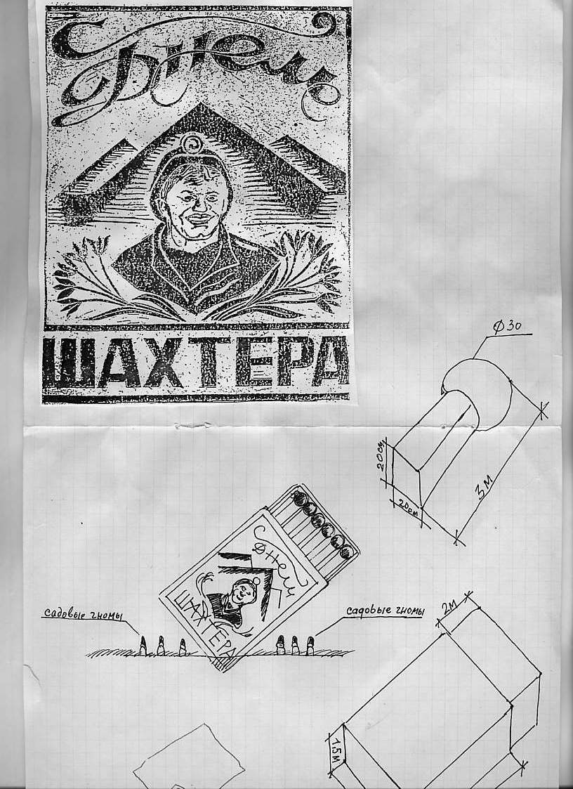 Sergej Shutov (1953, Moskau) Gravionix (The Victory upon Gravitation- the Victory upon Sun) Eine Riesenspirale strebt in den Himmel: sie ist Signum für den Fortschritt und weist in die ferne Zukunft. Die Spirale vermittelt den Eindruck einer schweren Stahlkonstruktion, die bedrohlich über dem Straßenraum schwebt. Aber die Atome dieses Moleküls sind dank des Carbon materiales so leicht, dass sie im Wind wie Luftballons schwenken. Constantin Zvezdochotov (1958, Moskau) Schachty oder Zum Tag des Minenarbeiters Die bekannte russische Kohlestadt Schachty und ihre in der ehemaligen Sowjetunion als Helden der Gesellschaft verehrten Minenarbeiter sind Mittelpunkt der Arbeit. Mit seiner überdimensional großen Streichholzschachtel mit einem Kohlearbeiter als Titel, thematisiert Zvezdochotov nicht nur den Ursprung von Kohlenstoff und die Kohle mit dem Beginn der Carbon Industrie, sondern auch den soziologischen und historischen Kontext. Die rund acht Meter hohe Schachtel steht wie ein Denkmal für Bergarbeiter da, umgeben von kleinen kitschigen Gartenzwergen, die das "Lied auf die Minenarbeiter" singen und ironisch auf die Wohlstandswelt des "kleinen" Mannes weisen. Yuri Leiderman (1963, Moskau) An observation platform, enabling us to look into the future - just like the one that was formerly standing in the end of Bellevuestrasse for those who wised to have a look over the Wall at the Eastern Berlin. A staircase leads to the private club with cinema hall, where a series of short humorous video gags is shown, describing the past, the present and the future of carbon.