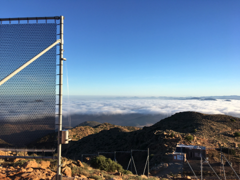Im Antiatlas-Gebirge wurde im Oktober 2018 das weltgrößte Nebelfänger-Terrain mit 31 CloudFisher eröffnet, das 16 Berberdörfer (ca. 1.150 Einwohner) erstmalig mit ausreichend Trinkwasser versorgt. Die Nebelkollektoren ernten an Spitzentagen bis zu 80.000 Liter Wasser in WHO Trinkwasser Qualität ! Im Rahmen dieses Einsatzes hat Soundkünstler Kalle Aldis Laar, mit Unterstützung des Industriedesigners und Entwicklers des CloudFisher Peter Trautwein, einen Klangkörper installiert, aus dem - durch Wind und Wetter betrieben - eine ungewöhnliche Komposition vor Ort entsteht, beeinflusst durch die klanglichen Eigenschaften gerade auch des Nebels. Der Wind fegt mit bis zu 100 km pro Stunde durch die Netze und durch die am Gerüst angebrachte Klanginstallation. Der Klangraum Nebel ist das erste Kunstprojekt seiner Art, das an einem der ungewöhnlichsten und vor allem trockensten Orte der Welt, dem Mount Boutmezguida, dem Tor zur Westsahara, auf die Bedeutung des Nebels als wertvolle Ressource aufmerksam machen möchte. ⇒ Film Die langfristig angelegte Aktion versteht sich auch nach Calling the Glacier ⇒ Presse als ein Beitrag für die Kommunikation, in der es u.a. um die Bewusstmachung der fortschreitenden Erderwärmung und die damit einhergehenden Auswirkungen auf die Zivilisation und Umwelt geht. Laut dem jüngstem Weltbankbericht werden sich bis 2050 als Folge des Klimawandels die Ursachen für Klimaflüchtlinge drastisch verschärfen, ein Fakt, der uns alle etwas angeht.